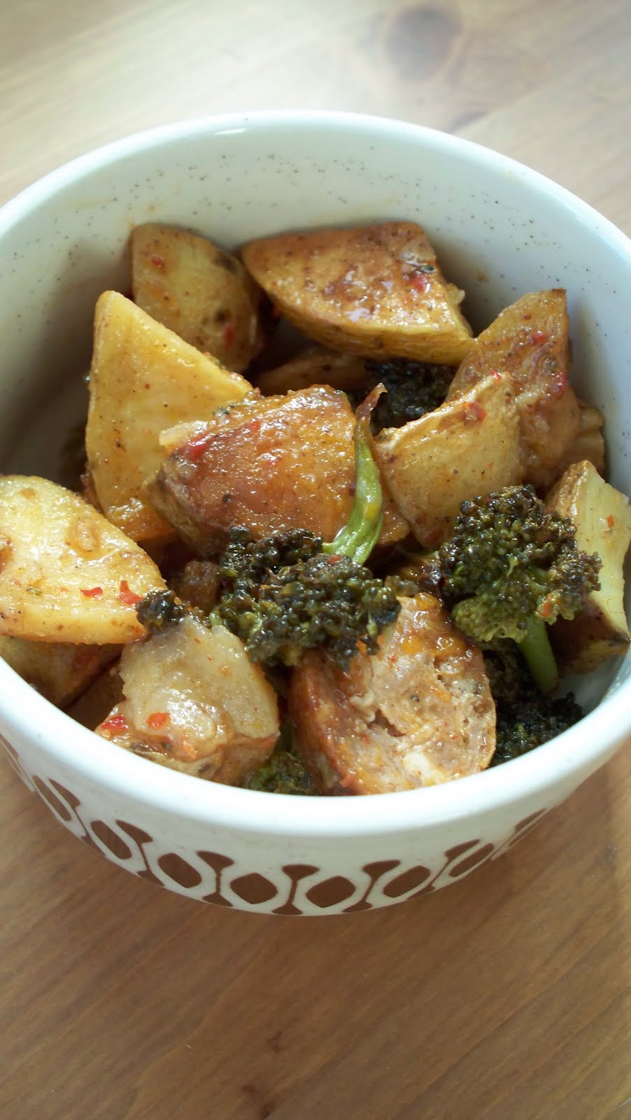 Roasted Broccoli-Potato-Sausage Salad With Maple-Chili Vinaigrette: